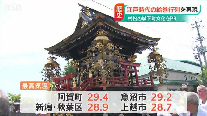 これに合わせ、五泉市民およそ150人が、甲冑などを着て江戸時代の絵巻に描かれた大行列を再現しました。