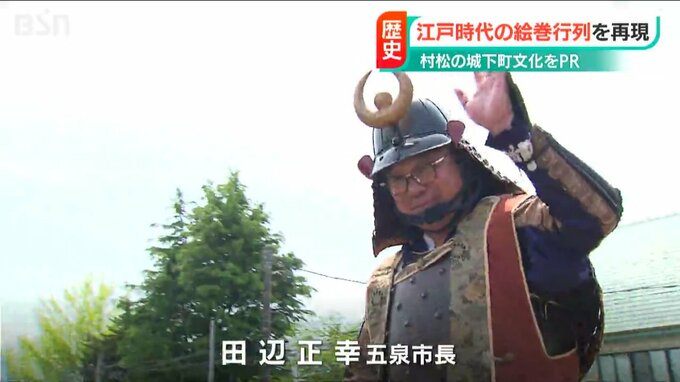 新潟県五泉市の村松地域で、江戸時代の絵巻に描かれた大行列を再現し、甲冑に身を包んだ市民らが町を練り歩きました。