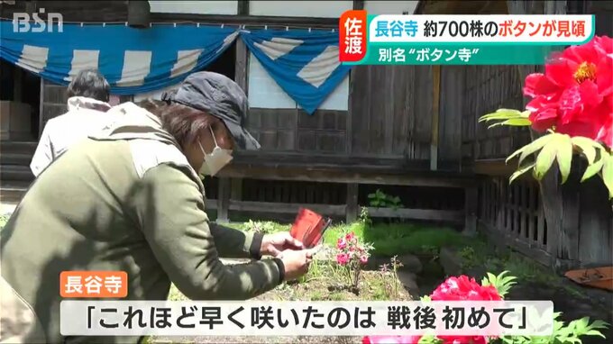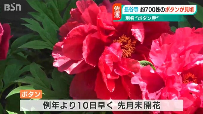 新潟県佐渡市の長谷寺でボタンが見頃を迎え、訪れた人たちを魅了しています。