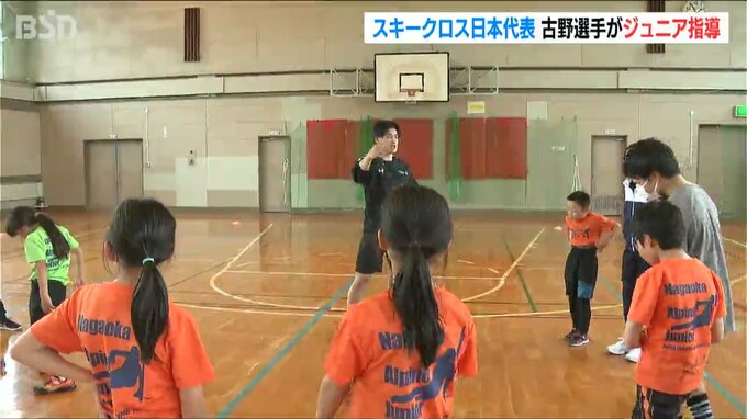 新潟県長岡市出身で、北京オリンピック・スキークロス日本代表の古野慧選手が、在籍していたジュニアチームで「トレーニング教室」を14日に開きました。