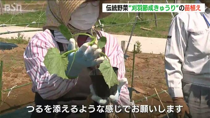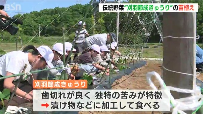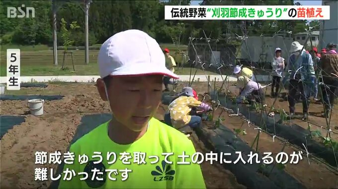 新潟県柏崎市の日吉小学校の5年生20人が16日に、地元の伝統野菜として知られる『刈羽節成(かりわふしなり)きゅうり』の苗植えを体験しました。