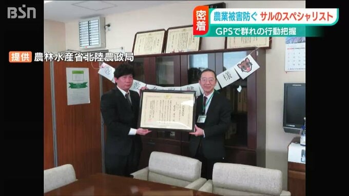 サル対策を続け、GPSを使った効率的な追い払いや地域住民らへの指導が評価されました。