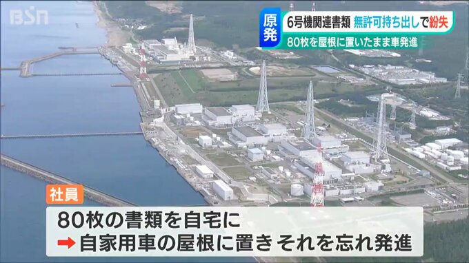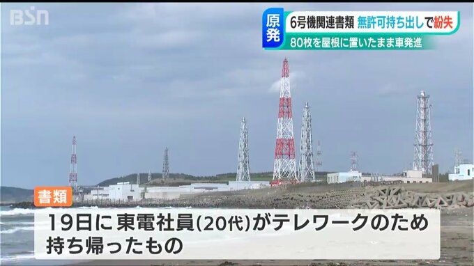 東京電力の社員がテレワークをするため持ち帰えった書類を車の屋根に置き、それを忘れて車を発進し80枚の書類が飛んでいきました。飛んで行ったのは、柏崎刈羽原発6号機に関する書類でした。