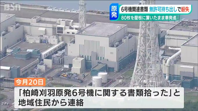 東京電力によりますと、今月20日に地域住民から「柏崎刈羽原発の6号機に関する書類を拾った」と連絡がありました。