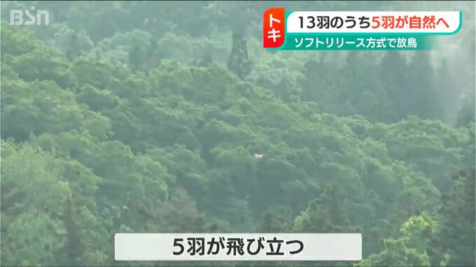 佐渡市で30日、28回目となるトキの放鳥が始まりました。13羽のうち、30日は5羽の“トキ”が飛び立ちました。