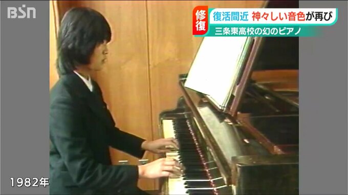 BSN新潟放送にも、41年前の1982年に校舎で美しい音色を響かせるエラールグランドピアノの「貴重な映像」が残っていました。