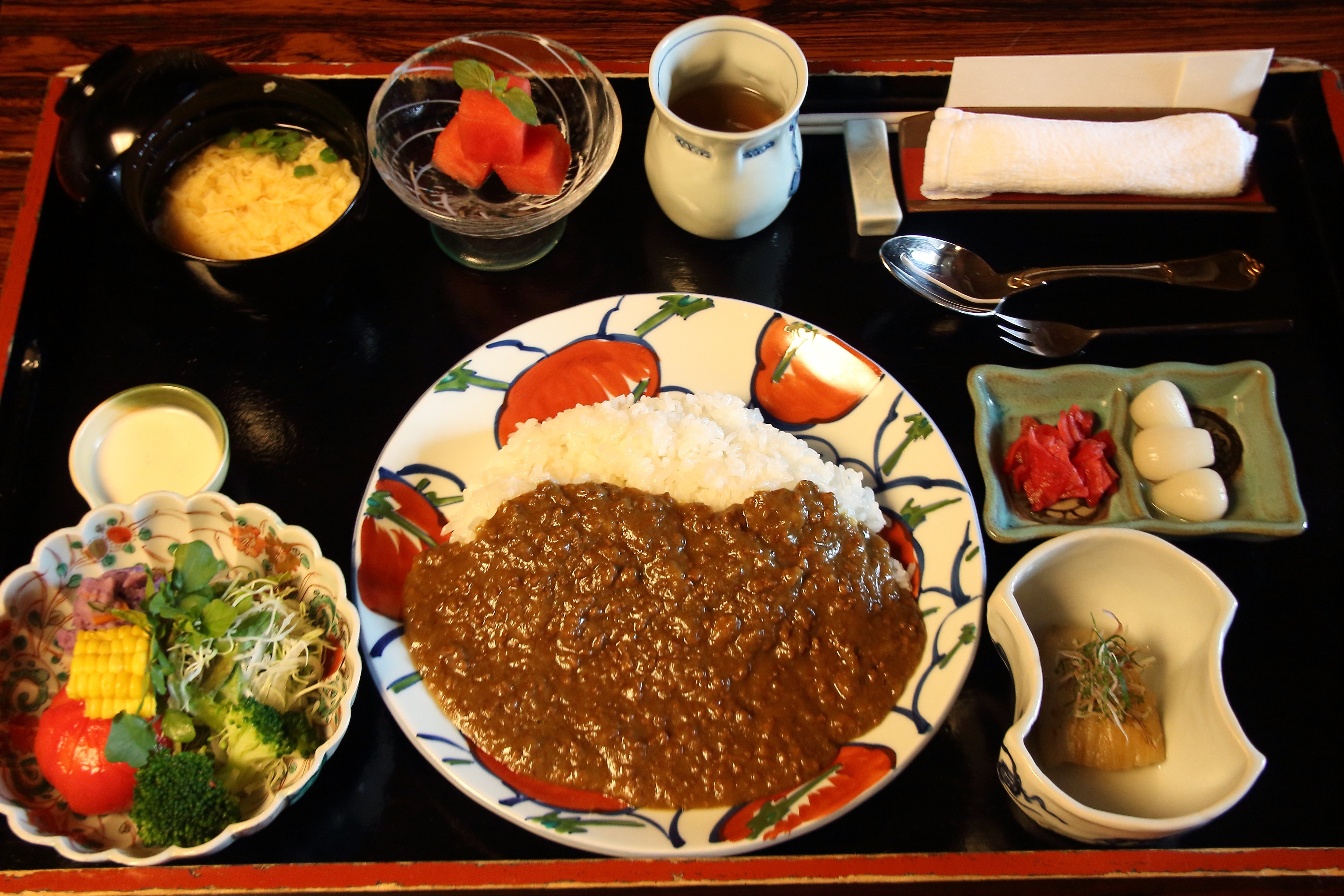 昼食は、佐々木七段が「料理長渾身のキーマカレー」、藤井棋聖が「旬の毛ガニをたっぷり使ったカニクリームコロッケ~ にしかん なないろ野菜のびっくりポテサラ添え ~」を注文しました。