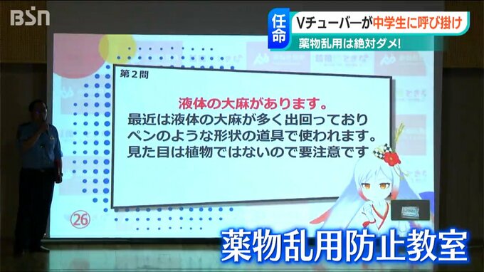 新潟にまつわる“バーチャルユーチューバー(Vチューバー)”の越後屋ときなさんが、新潟県警の『ノードラッグ大使』に任命され「薬物には手を出さないで」と、中学生に薬物乱用防止を呼び掛けました。