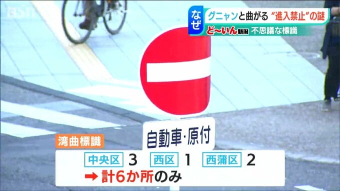 警察によりますと、新潟県内でこの『湾曲標識』が設置されているのは、新潟市中央区に3か所、西区に1か所、西蒲区に2か所の計6か所しかないということです。