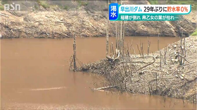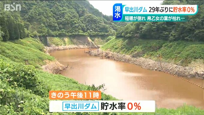 早出川ダム周辺では、7月21日の梅雨明け以降、雨が降ったのは今月7日のみ。貯水率が0%になるのは、なんと29年ぶりです。