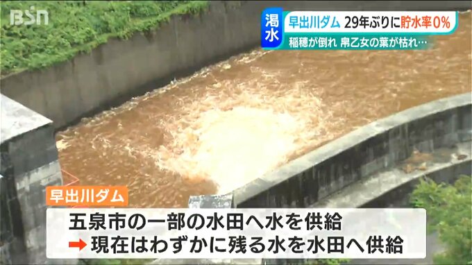 連日続く暑さと水不足に農家が苦境に立たされています。新潟県五泉市の一部の水田に水を供給する「早出川ダム」で15日夜、貯水率が29年ぶりに0%になりました。稲や野菜など農作物への影響がすでに出始めています。