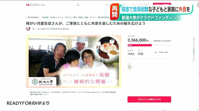 食事が困難な障害を持つ子どもたちとその家族が“外食”を楽しむ機会を提供しようと資金を募る「クラウドファンディング」が話題です。