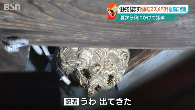 「さっきよりも大きいですね。さっきのは1カ月経たないくらいの巣なんですけど、これは1カ月以上は経ってるかな。もう巣が完成しつつあるので、暴れる確率は高いですね」