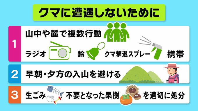 さらに、クマのエサになってしまう“生ごみ”や、不要の果樹(柿、栗など)を適切に処分することです。