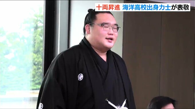 糸魚川市にある新潟県立海洋高校出身で、大相撲秋場所で十両に昇進し12勝の好成績を上げ優勝争いを盛り上げた『大の里』と『高橋』が26日、糸魚川市の米田徹市長を訪ねました。