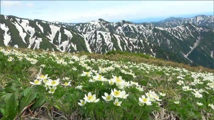 雪解けの時期に白い花を咲かせるハクサンイチゲ。花言葉は「幸せを招く花」。