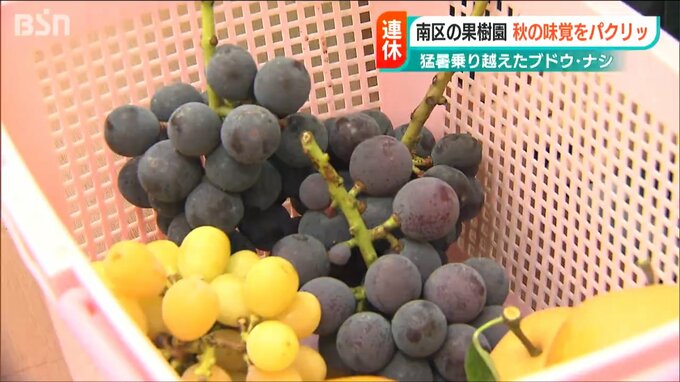新潟市南区にある『池田観光果樹園』では、ブドウとナシ狩りがピークを迎えていました。