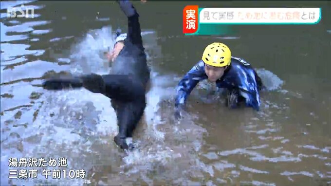 池に潜む危険を知ってもらおうというイベントが三条市で開かれました。
