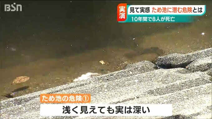 「ため池は見た目がすごく安全に見えるんですよね、ところが一回足を踏み入れると命の危険がある。基本的なところでいうとため池には近づかないということですよね」