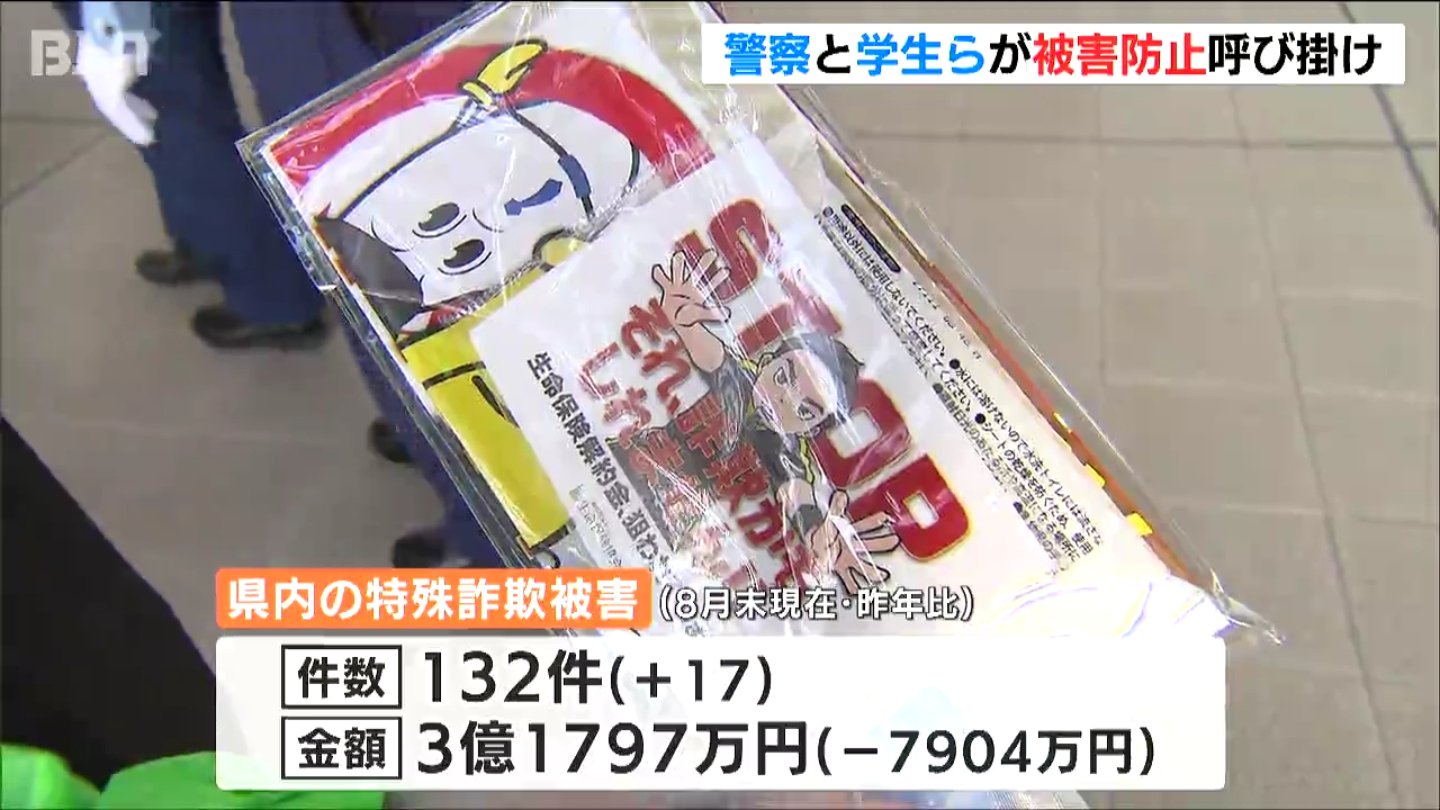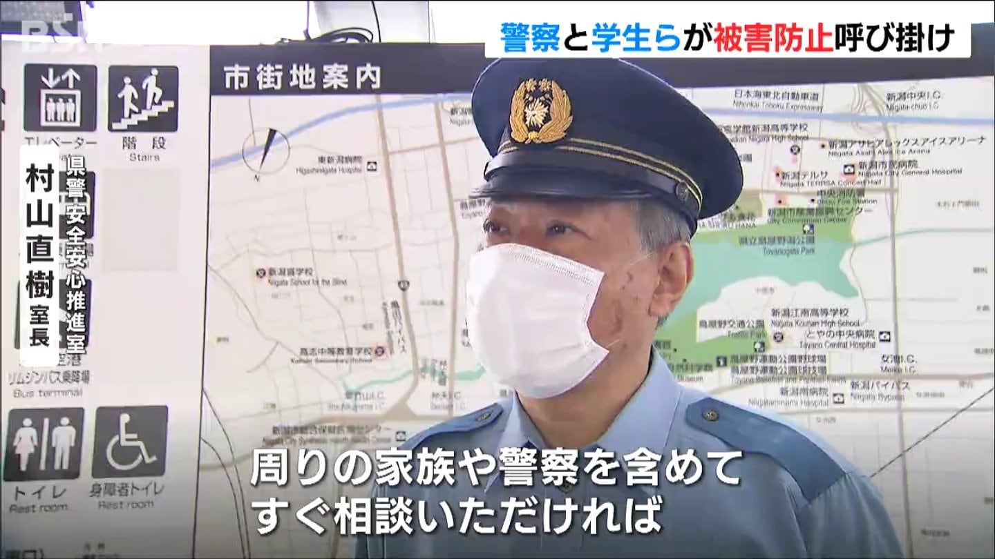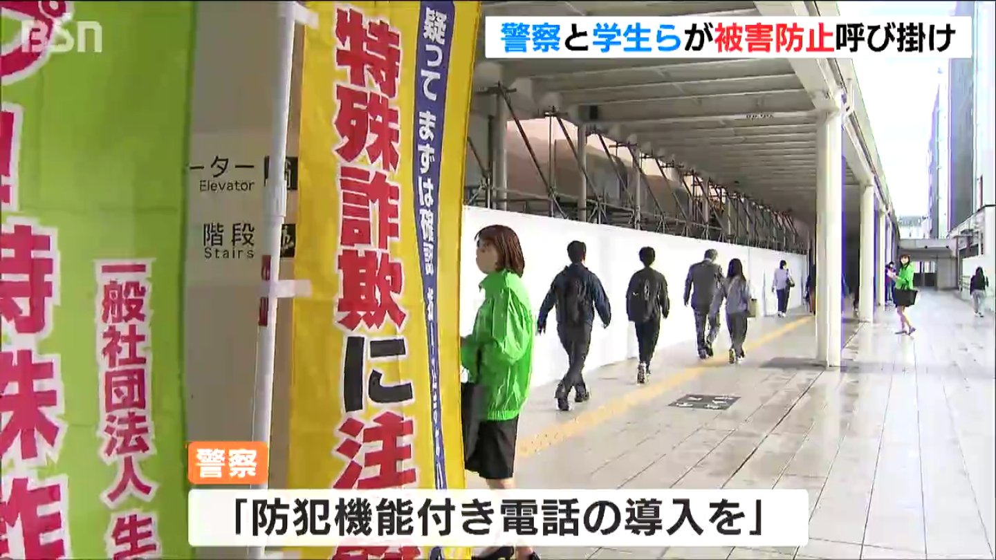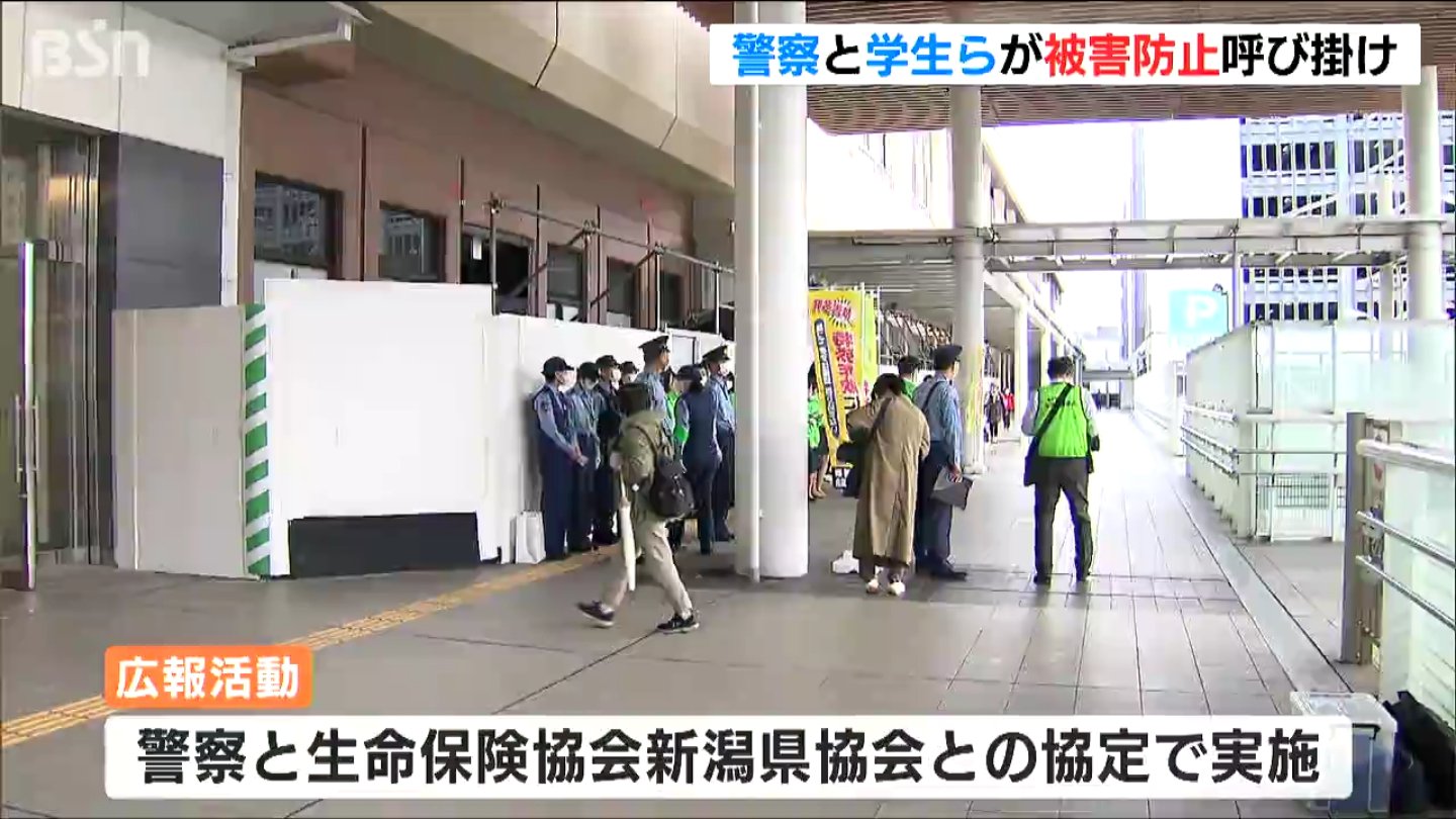 相次ぐ特殊詐欺の被害を受け新潟県警と学生らが23日、被害防止の広報活動を行いました。