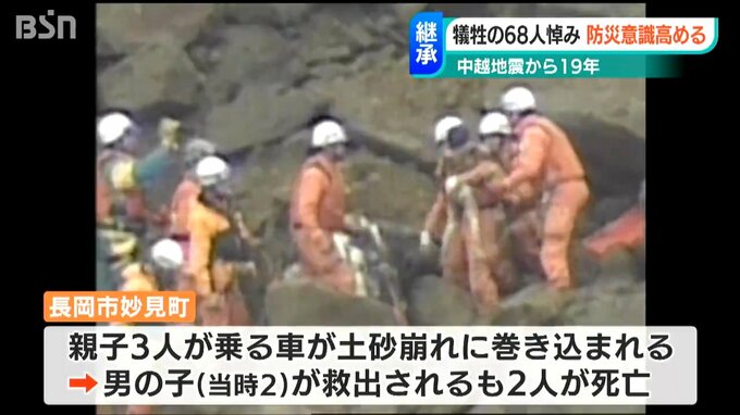 長岡市の妙見町では、親子3人が乗った車が土砂崩れに巻き込まれ、当時2歳だった男の子は奇跡的に助け出されましたが、2人が亡くなりました。