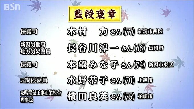 様々な分野での功績を称える秋の褒章が発表され、新潟県内では7人が受章することになりました。