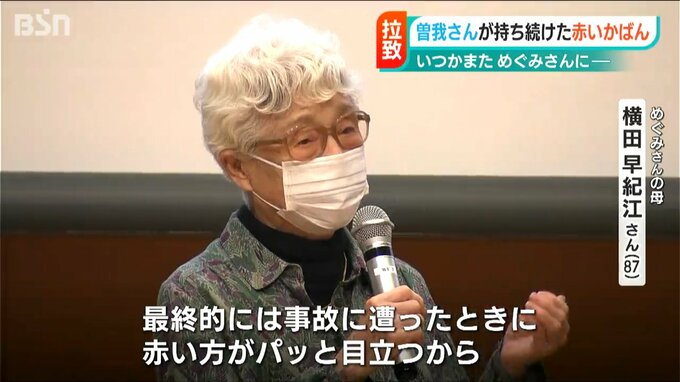 北朝鮮で8か月ほどめぐみさんと一緒に生活していたことや、曽我さんが結婚するため、めぐみさんと離れて暮らすことになった際にめぐみさんからもらった、赤いかばんの思い出を明かしました。