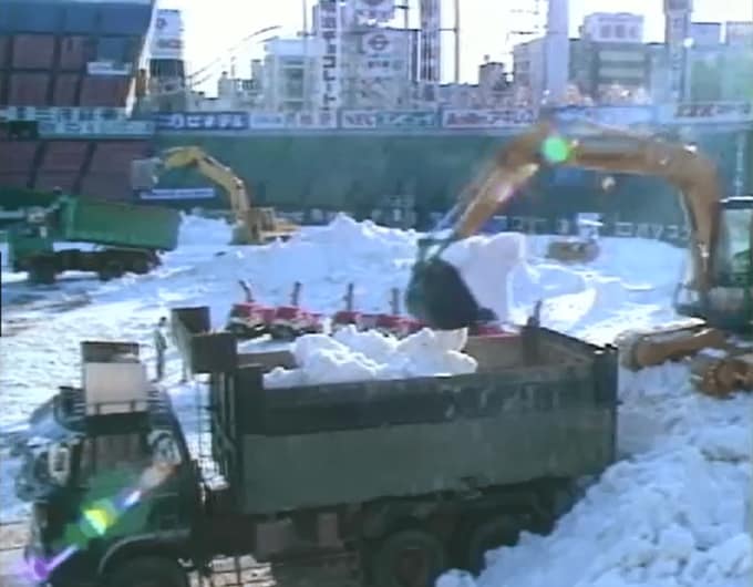 さらに、ボイラーで作った温水をパイプの中で循環させて、その上に雪を被せて溶かす方法も試されたのですが、大量の雪を一気に消すのは至難の業でした。