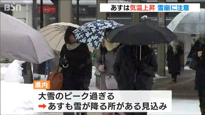23日県内は大雪のピークは過ぎましたが、24日は気温が上がるところがある見込みでなだれなどに注意が必要です。