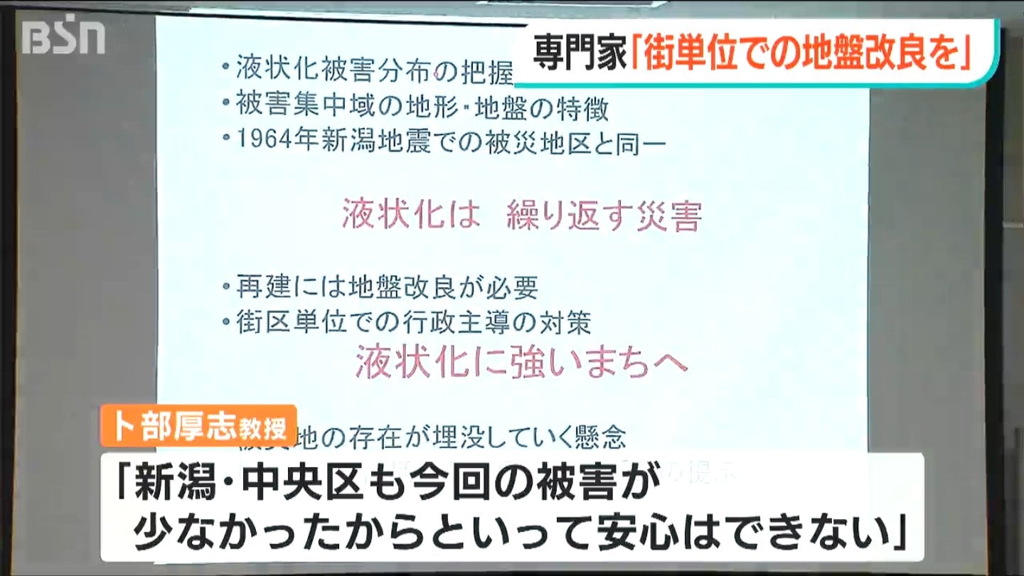 能登半島地震から29日で4週間。新潟大学の教授らが新潟市の液状化現象被害の現地調査の報告会を行いました。「液状化は繰り返す災害」だとして、再建には街単位での地盤改良が必要だと警鐘を鳴らしています。
