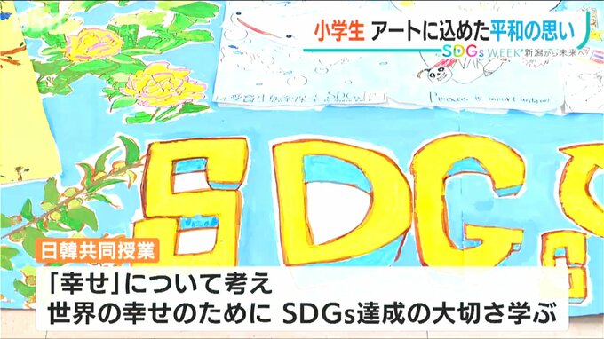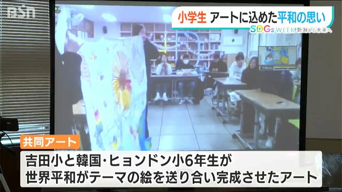新潟県燕市の小学生と韓国の小学生がオンラインで交流しながら、力を合わせて「SDGs」に関するアート作品を作りました。