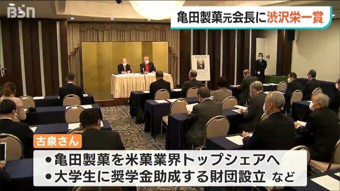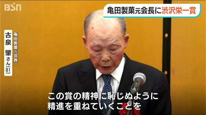 亀田製菓の元会長 古泉肇さんが優れた企業経営者を称える『渋沢栄一賞』を受賞しました。