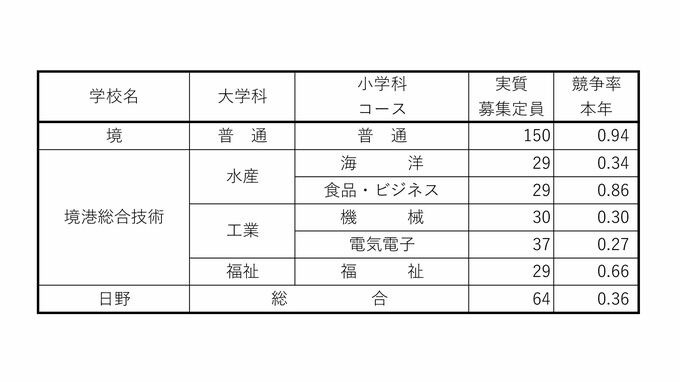 鳥取県公立高校入試2024競争率 平均0.87倍 最高は米子東高・生命科学コース1.63倍 鳥取西高普通科は0.97倍