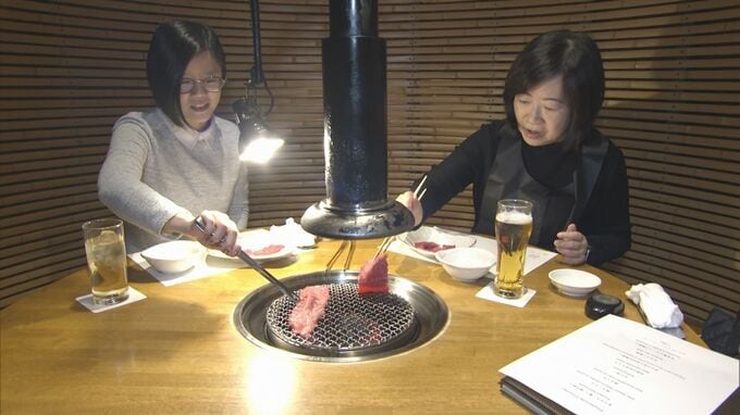 香港から鳥取へやって来た観光客が、笑顔で鳥取産の牛肉をほおばっていました。
