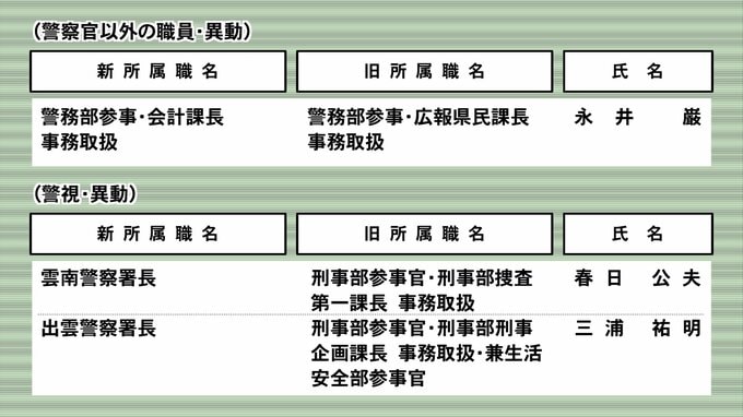 3. 島根県警人事異動(令和6年春第1次)3月22日付