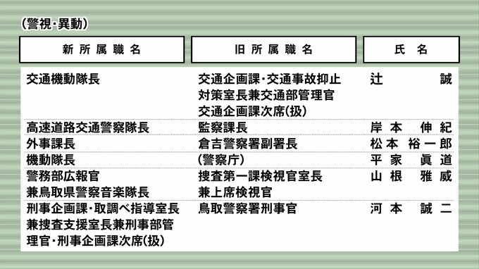 鳥取県警人事異動(令和6年春)警部以上3月25日付