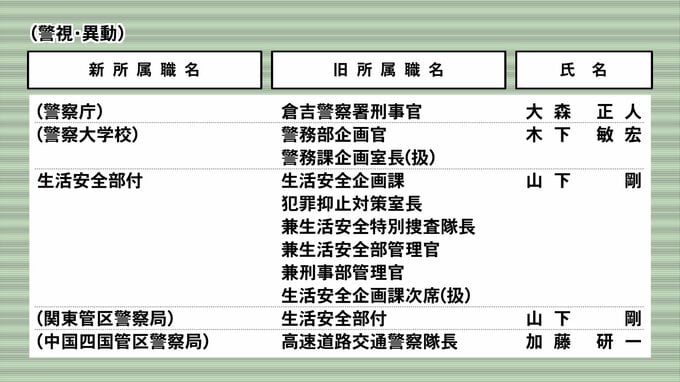 鳥取県警人事異動(令和6年春)警部以上3月25日付