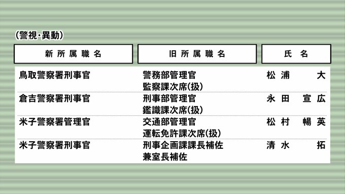 鳥取県警人事異動(令和6年春)警部以上3月25日付