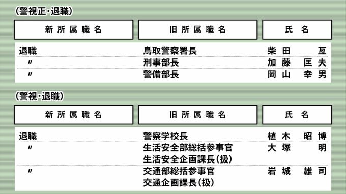 鳥取県警人事異動(令和6年春)警部以上3月25日付