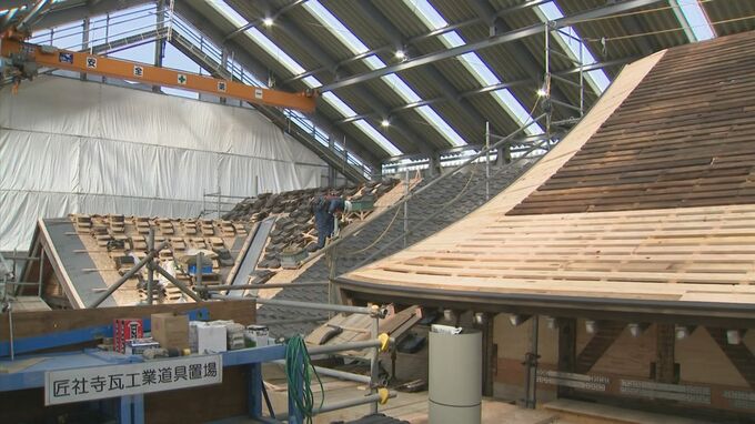 1990年に廃止されたJR大社線の終着駅、旧大社駅の駅舎の修理工事で、近く現場見学会が開かれます。耐震補強などを施しながら建築初期の姿を復元することを目指し、2023年の末から屋根瓦を葺く作業が進んでいます。