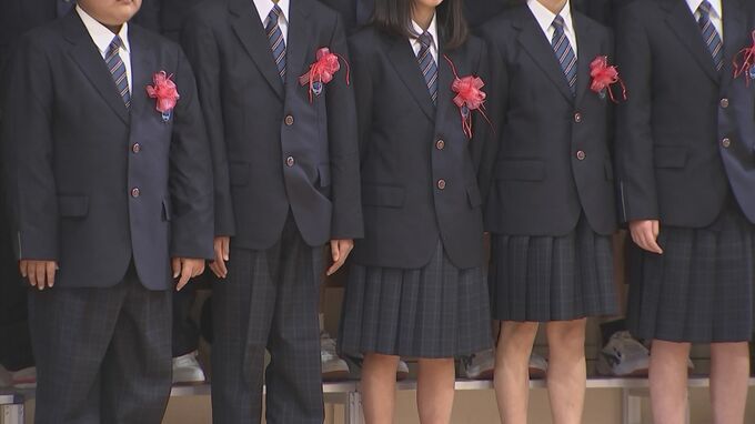 「きょうは小学校の卒業式なんですが、卒業生の皆さんが着ているのは中学校の制服でしょうか。袴を着た児童の姿はありません」