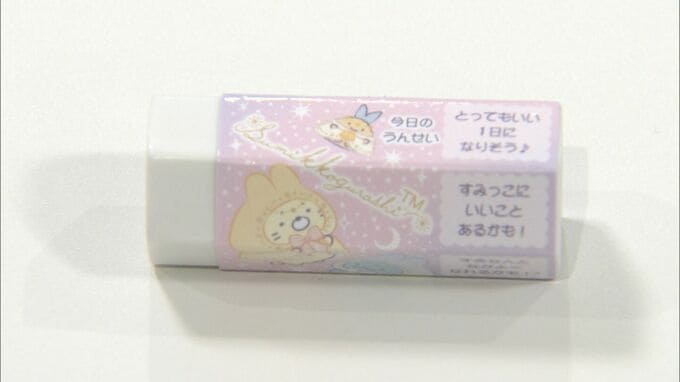 この春小学3年生になった女子児童が教えてくれたのは、消しゴムが六角形になっていて、転がすと占いができるという占い消しゴム。