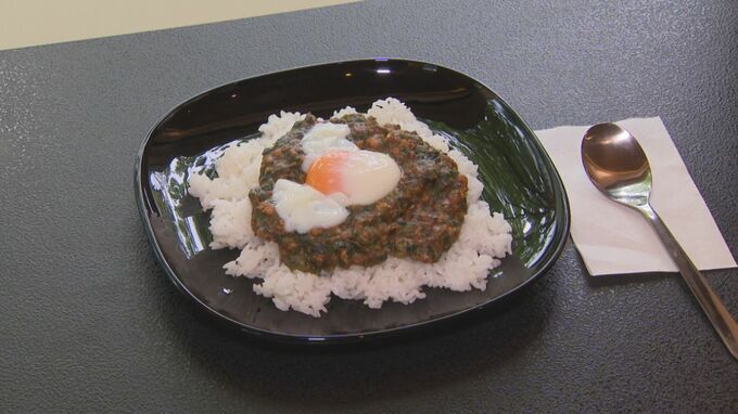「今回は結構スパイスを効かせたものにしたかったので、ホウレンソウと合わせて作りました。結構スパイスが強めになってしまったので、湯梨浜町の泊地区で平飼いされている卵を使ってマイルドになるように。」