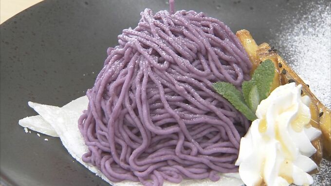 栗ではなくてイモ、湯梨浜町産のムラサキイモを使った、その名も「湯梨浜おいモンブラン」です。