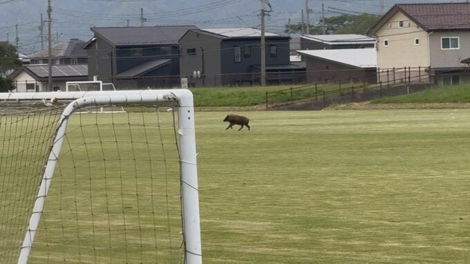 イノシシは視力があまり良くないため、じっと動かなければ認知されない場合が多いとのこと。