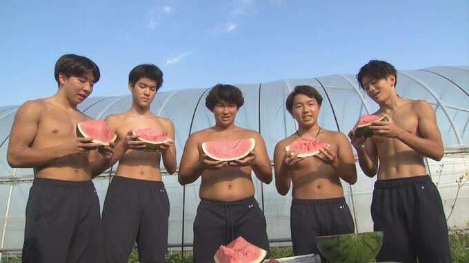 「生まれて初めてスイカを使った筋トレを指導しました。水中でしっかりかいたりする下半身の力と、ボールを投げるときの回旋の動きというのも、スイカ筋トレに入れてみました」