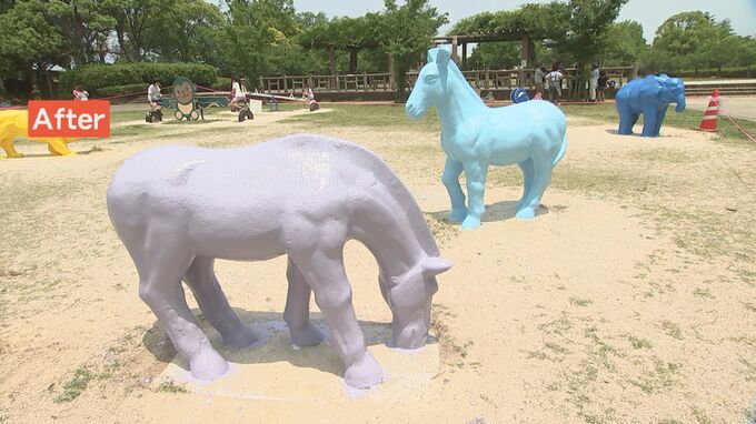 老朽化進む「公園遊具」 更新か?撤去か? 設置は40年以上前、色褪せた“動物オブジェ”をどうする? 2024年6月17日(月) 12:30 鳥取 なんということでしょう。覇気のなかったライオンは勇ましい赤色に。 耳だけ補強されていたヒョウは鮮やかなピンクに。 そして、シマウマは、角こそありませんがユニコーンのような鮮やかな見た目に生まれ変わりました。