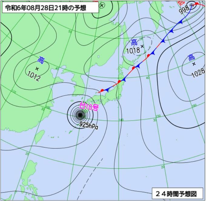 「台風10号」当初の予想より東寄りへ急カーブか 九州直撃のあと、中四国・近畿・東海・関東甲信を直撃する可能性 西日本で29日にかけ「線状降水帯」発生する可能性 これまでに経験したことのない「最強に近いクラス」 2024年8月28日(水) 11:53 島根 気象庁HPより 気象庁HPより