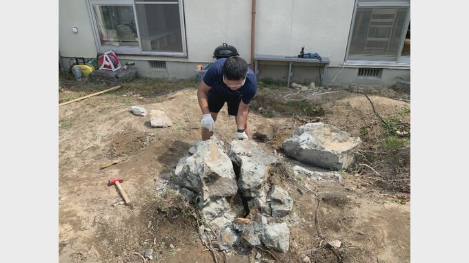 重すぎる石を動かすには割るしかない…ここもお金をかけず自力でやってみました。