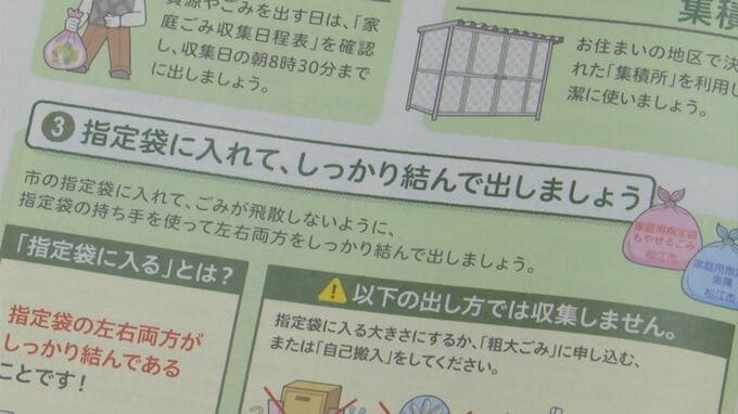 「持ち手のところも、縛って十字にしばっていただき、それで収まる量を出していただくことが松江市のルール」